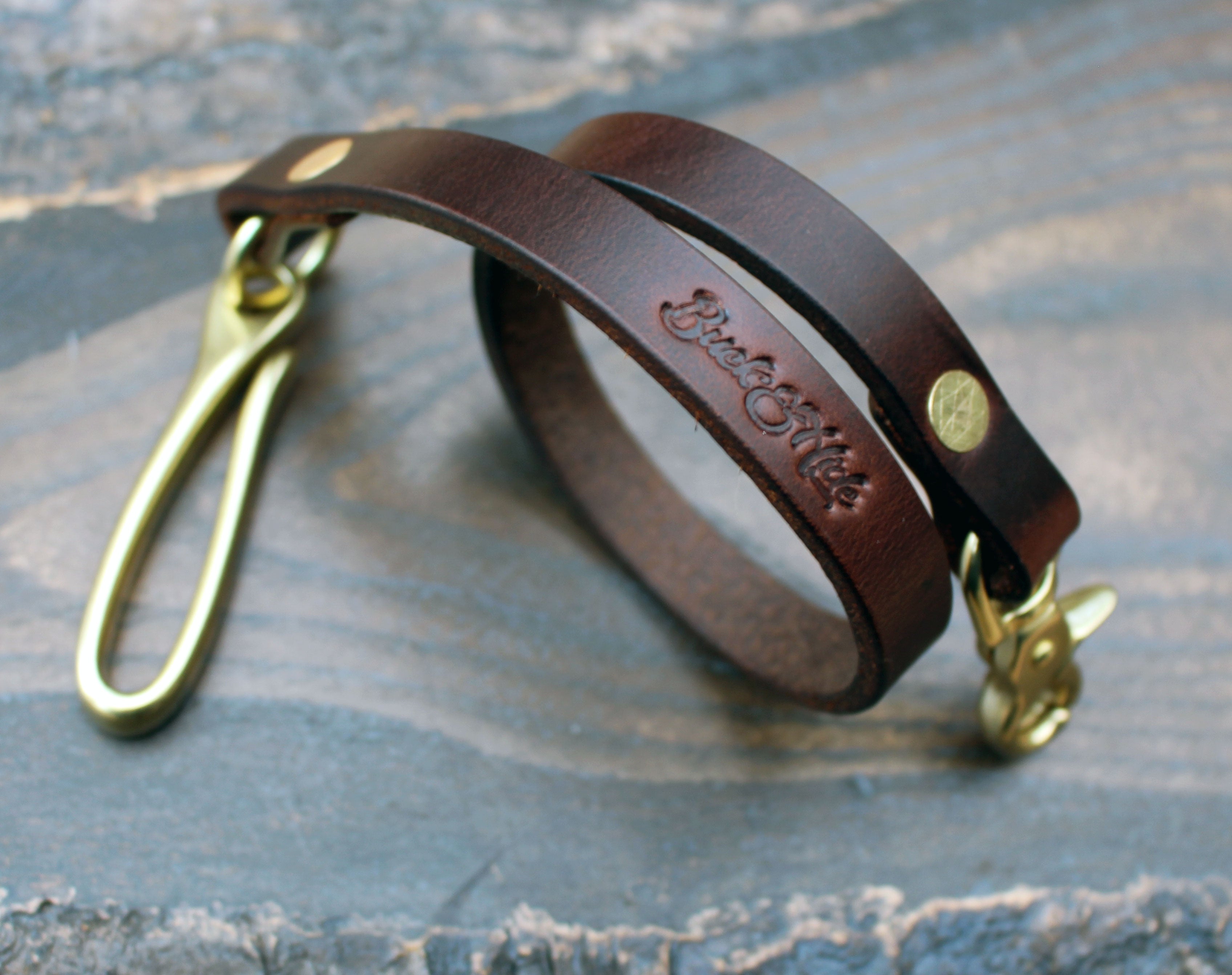 Handmade lanyards, brass chains and long leashes, veg-tan belts. Keep your keys...