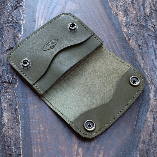 Japanese-style short bifold, olive Wax, vintage coin snap