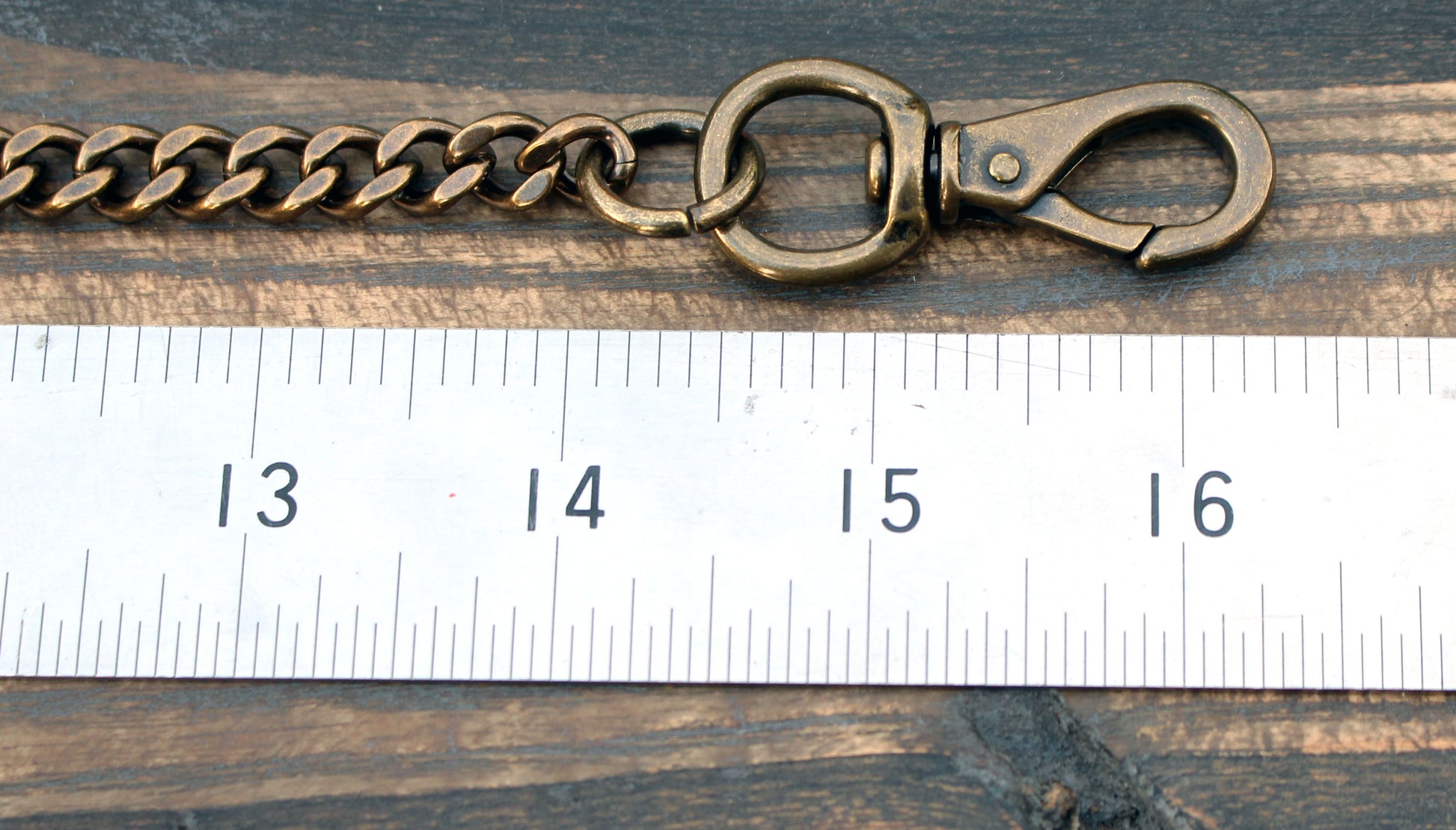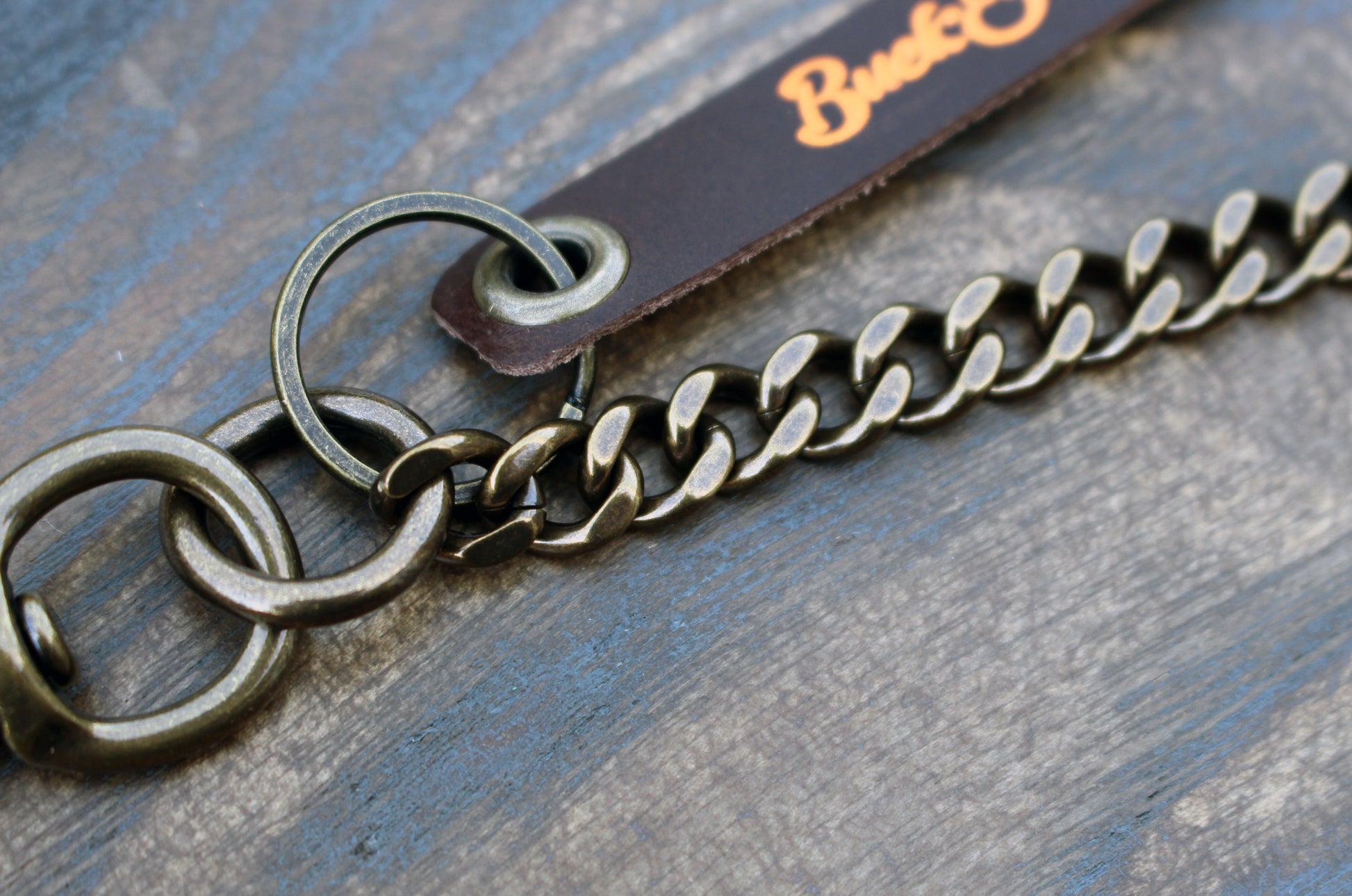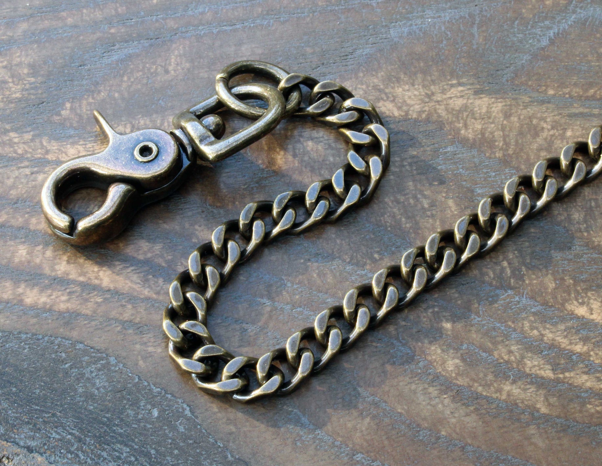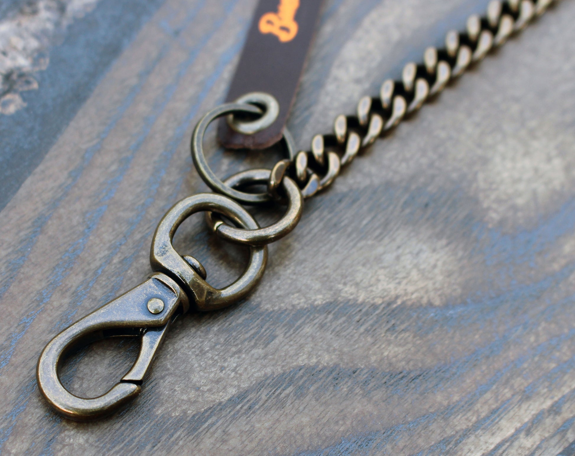These long solid brass chains are ideal for back pocket wallets or just for a long keychain. The metal is solid brass and all comes from a USA foundry so the quality is excellent. The whole piece has a really solid, premium feel.