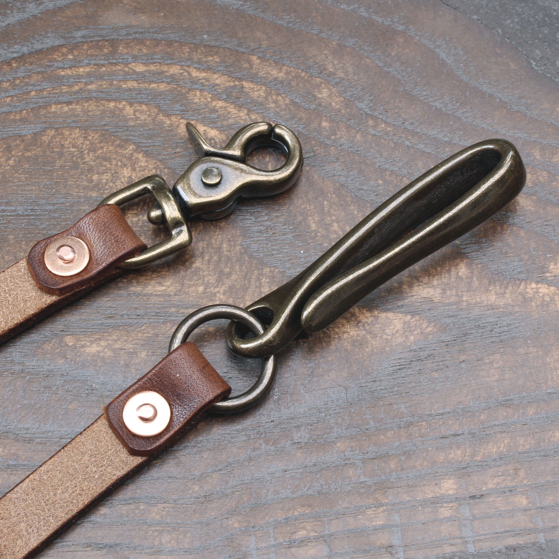 Just choose your leather and hardware options from the drop down menus, I'll build your lanyard & deliver it to your door! I have heavyweight fish-hooks clips in shiny brass, antique brass, shiny nickel silver or matte nickel, all premium quality imported from the USA. Prices vary slightly depending on leather & metal finish.