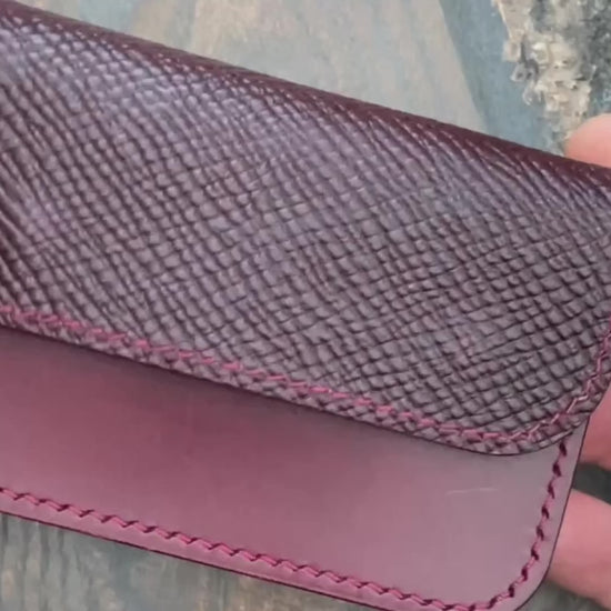 A zipped trucker-style wallet handmade from a combination of burgundy Buttero leathers giving the piece a unique contrast. The outer uses Buttero with a beautiful tannery-hatched texture, while the inside is the traditional smooth finish. Buttero leathers come from the Walpier tannery in Italy, are 100% veg-tanned and are used by quality manufacturers worldwide.