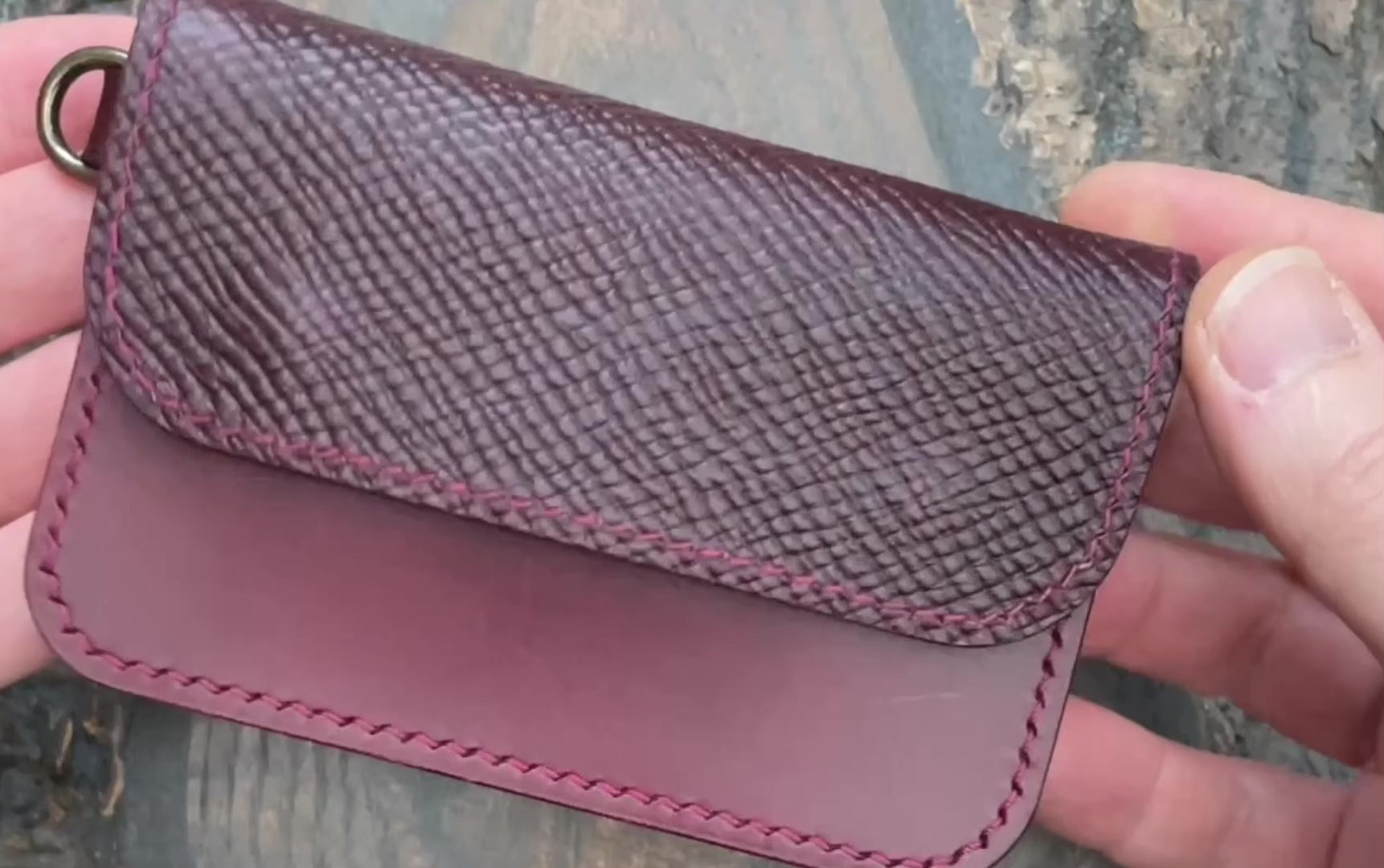 The design gives you a zipped pouch at the front for coins and cards, a spacious compartment behind this for notes, receipts and more cards (notes up to around 75mm tall will fit halved) plus a handy fast-access rear card slot. There's a YKK zip in antique brass with vanilla cloth and a solid brass D-ring so the wallet can be attached to a leash. The small press snaps are by Fiocchi in Italy and have a really nice feel, I've built these into the flap so they are hidden on the outside. It's all saddle-stitched by hand using burgundy Vinymo thread from Japan. Comes in branded gift bag.