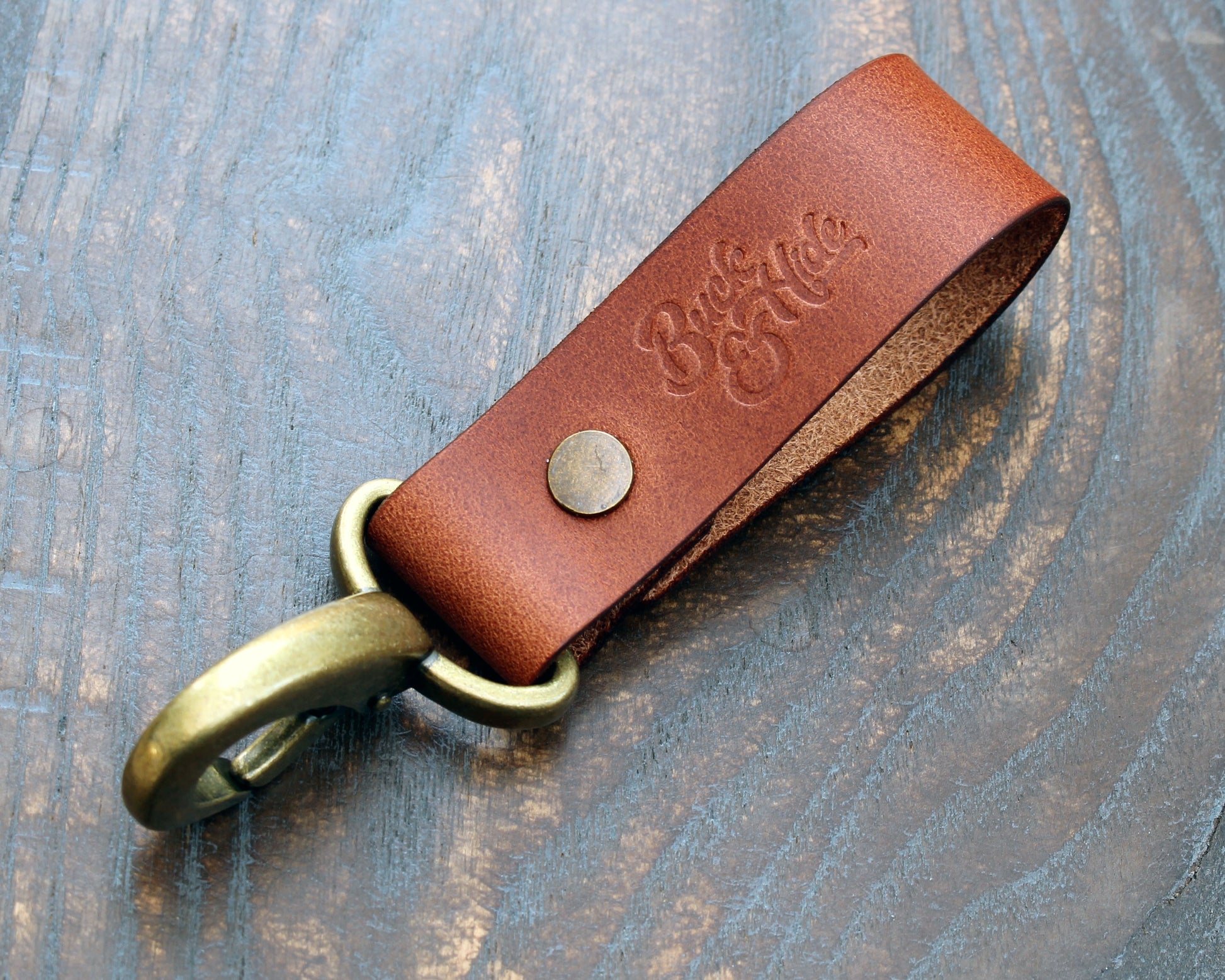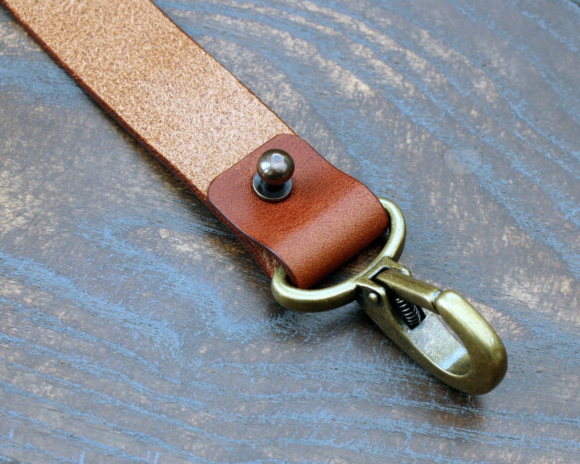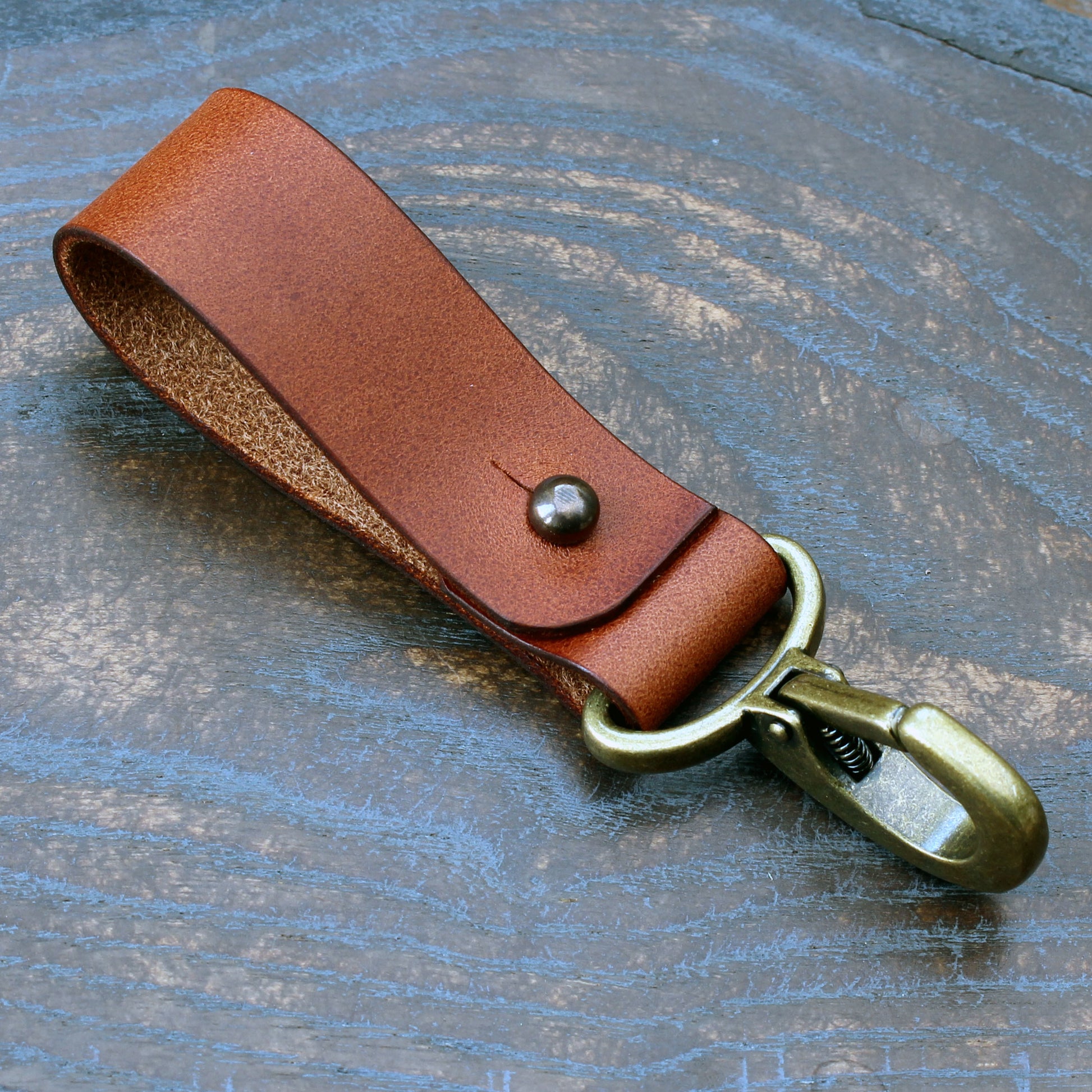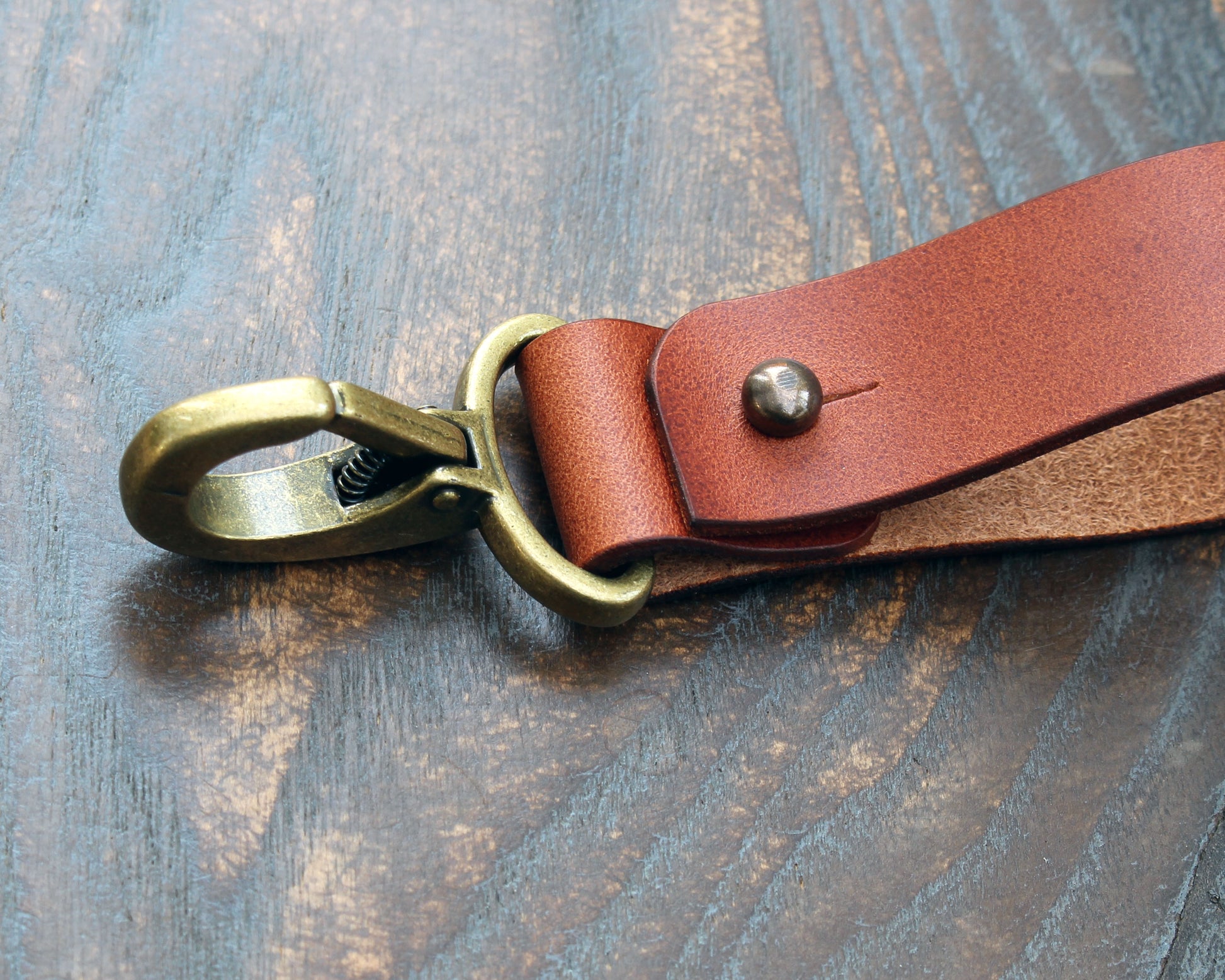 Simply loop over a belt for a perfect, easy-access key holder or just use as a secure handle for a bunch of keys. The clip is non swivel so you'll always know which way the clip opening is facing. The leather fastens onto a 'Sam Browne' stud, it can be a little stiff at first but the leather will quickly soften up.