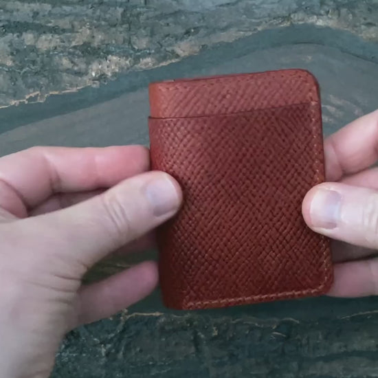 A bi-fold card wallet made in cognac Buttero, using the hatch finish for the outer and the traditional smooth for the inside card pockets. Buttero comes from the Conceria Walpier tannery in Italy and is used for quality small goods around the World - it has a firm feel and ages beautifully.