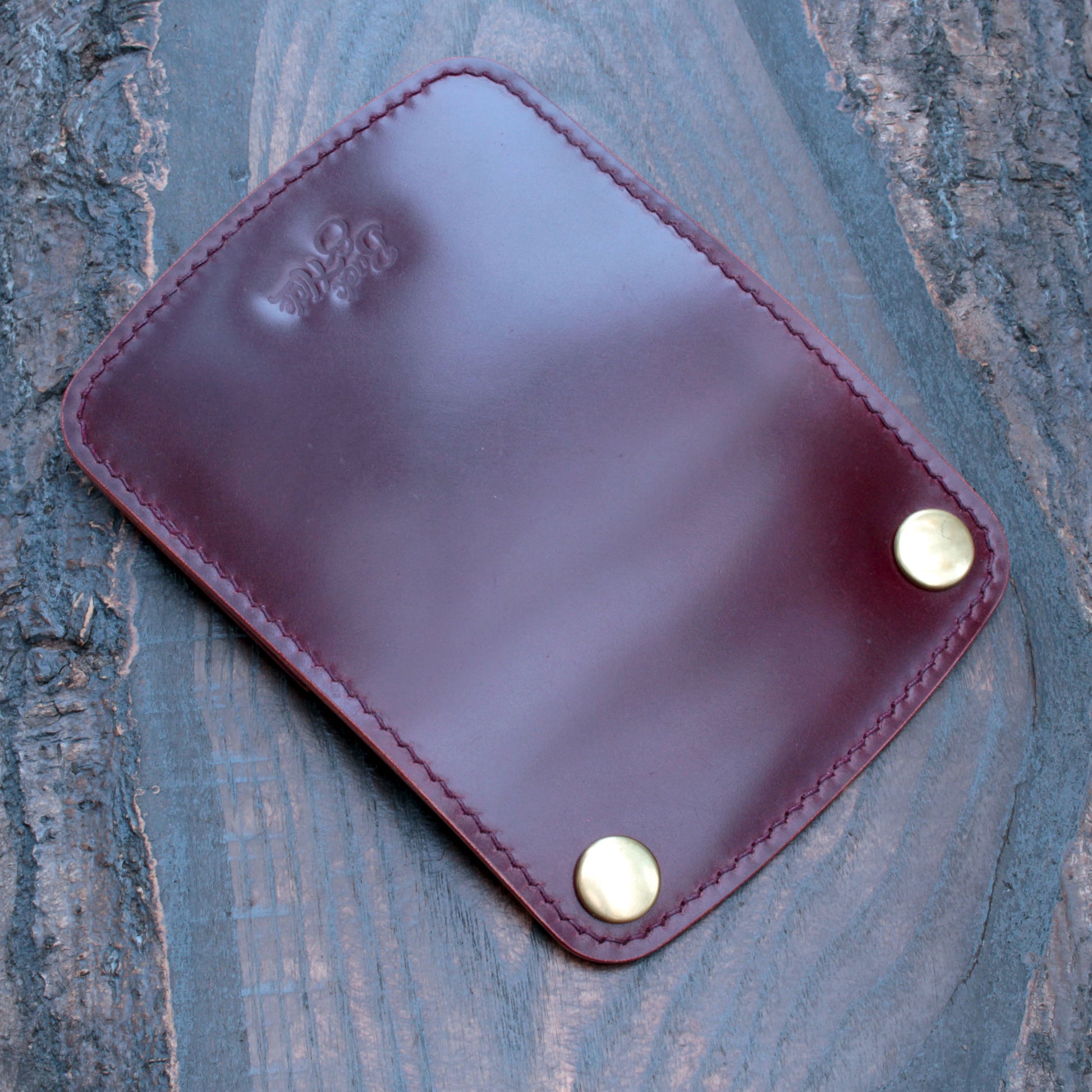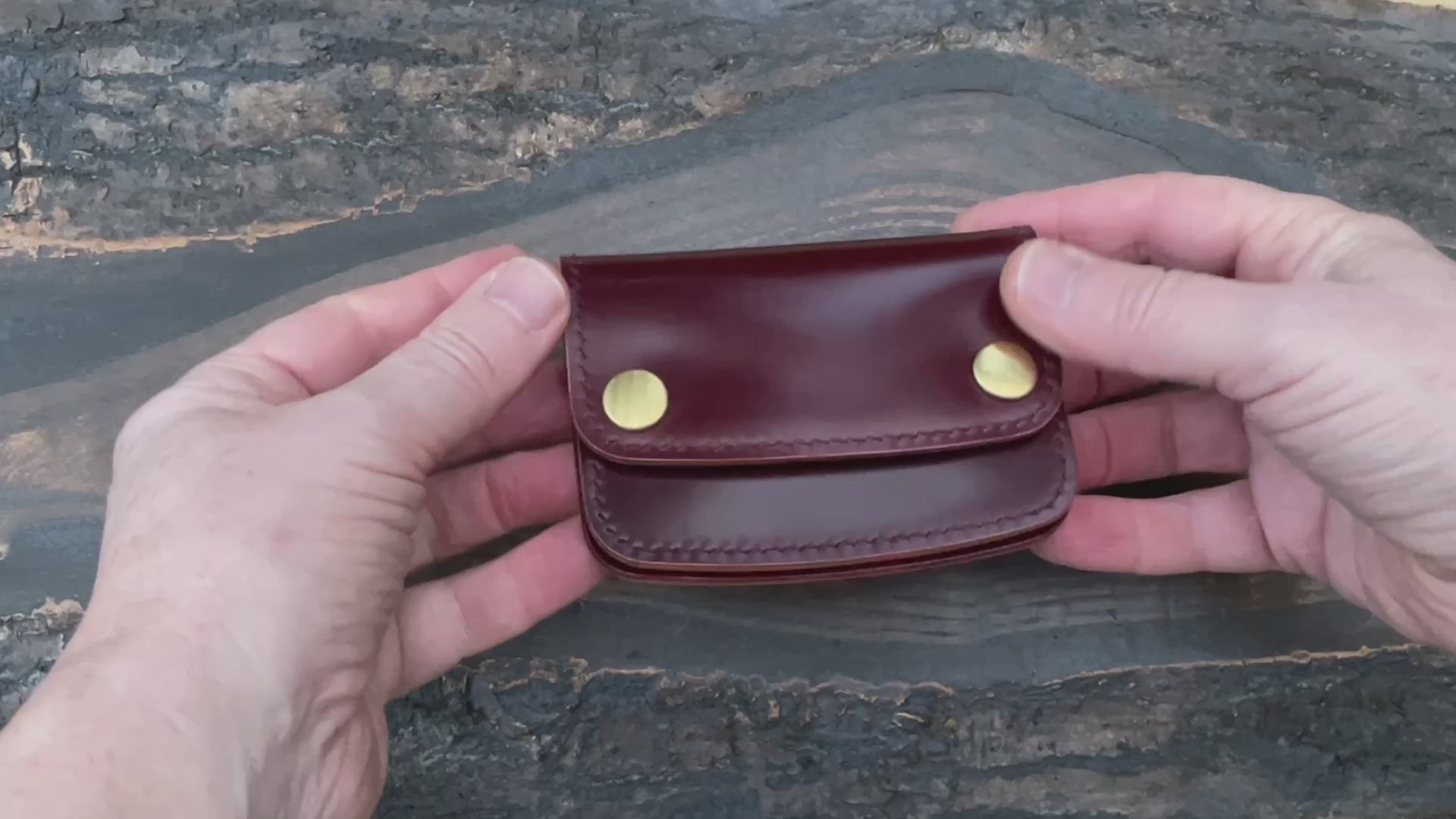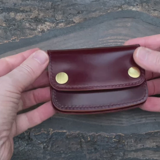 Handmade leather snap wallet in burgundy Shell Cordovan & Buttero