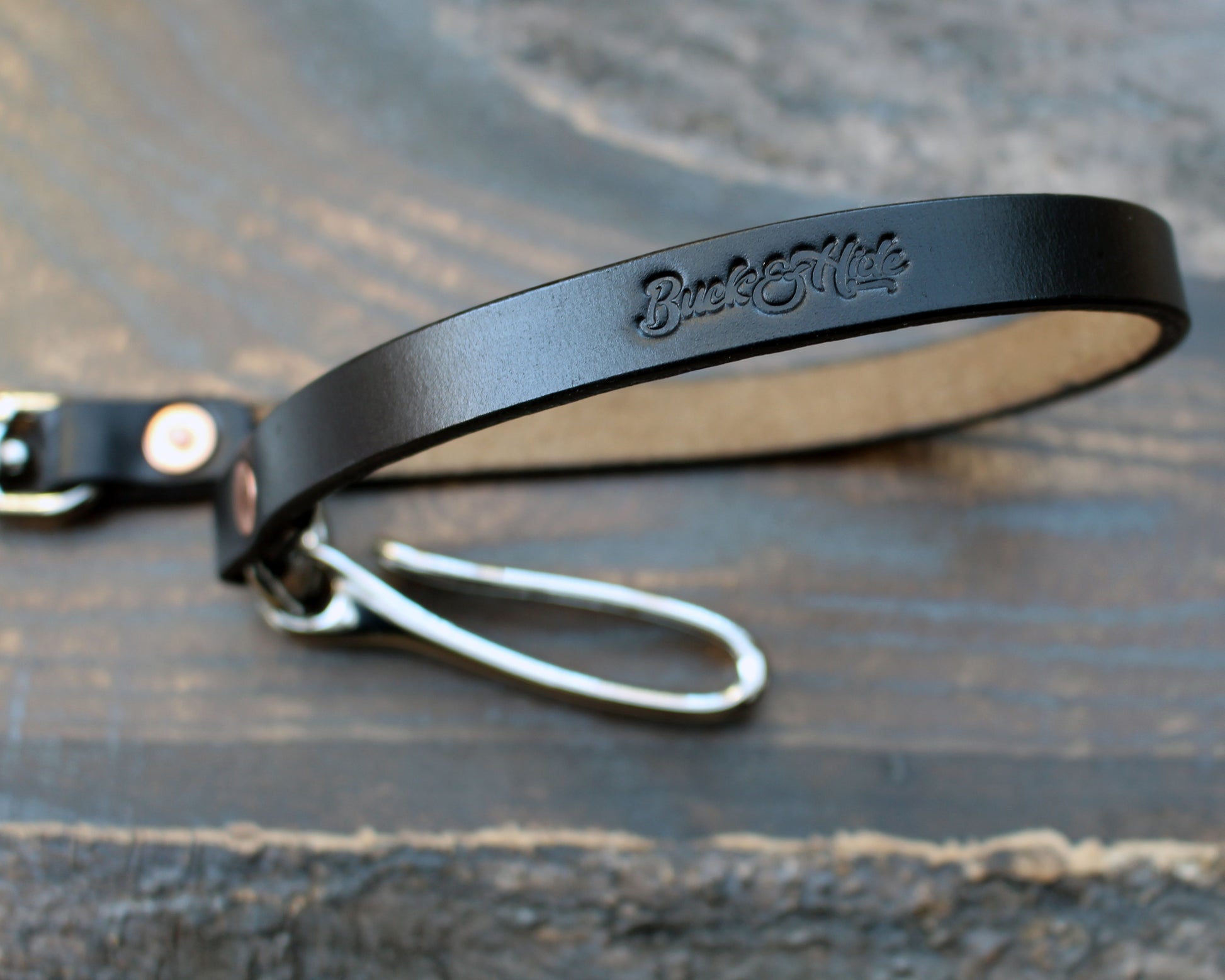 This premium, back-pocket wallet tether is handmade using 12mm wide black Chromexcel from the famous Horween tannery in Chicago. Chromexcel is well known for its rich pull-up and natural softness. Hot-stuffed at the tannery to infuse it with oils and greases, the leather is durable and ages beautifully.