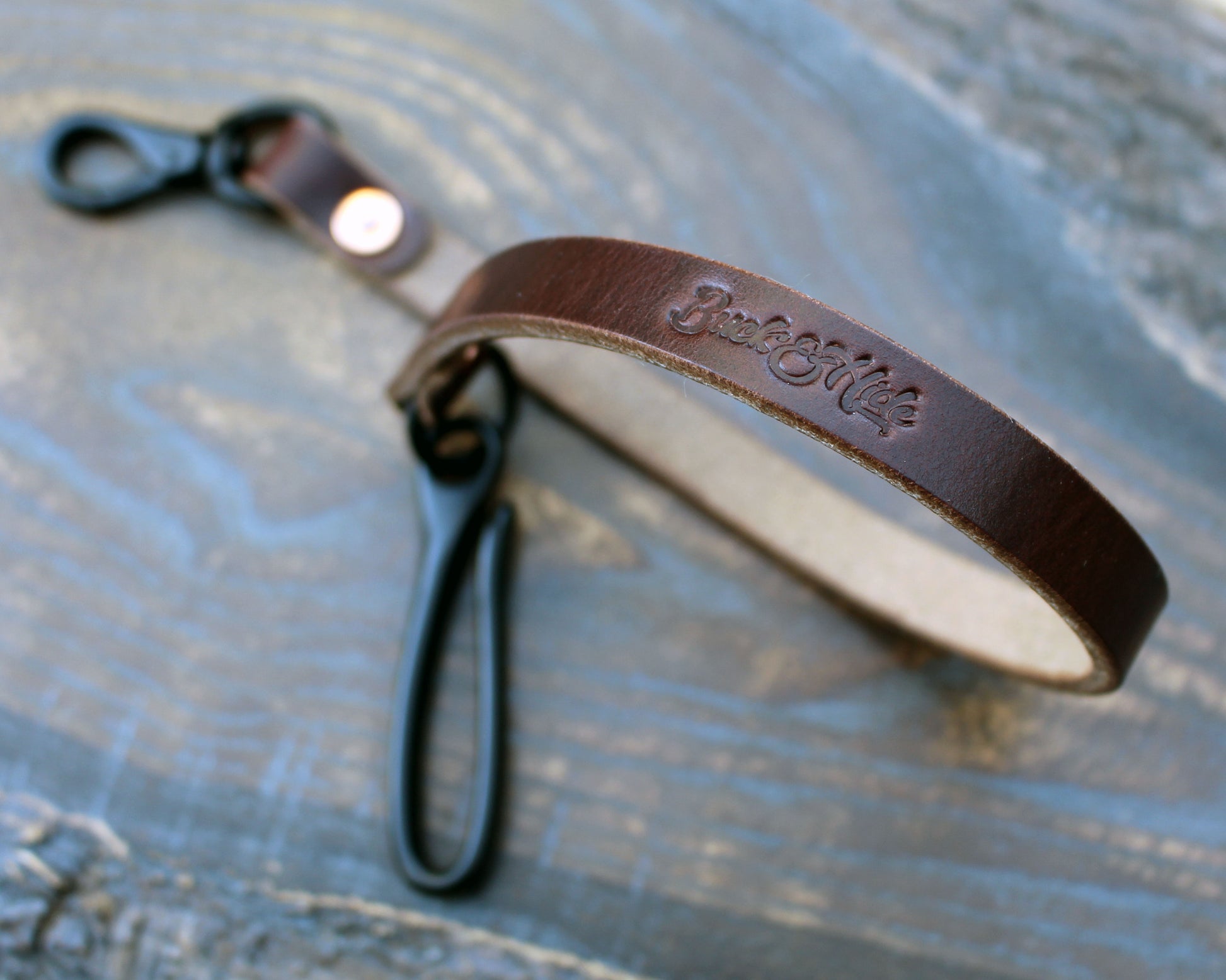 Horween brown Chromexcel wallet lanyard, PVD black hardware