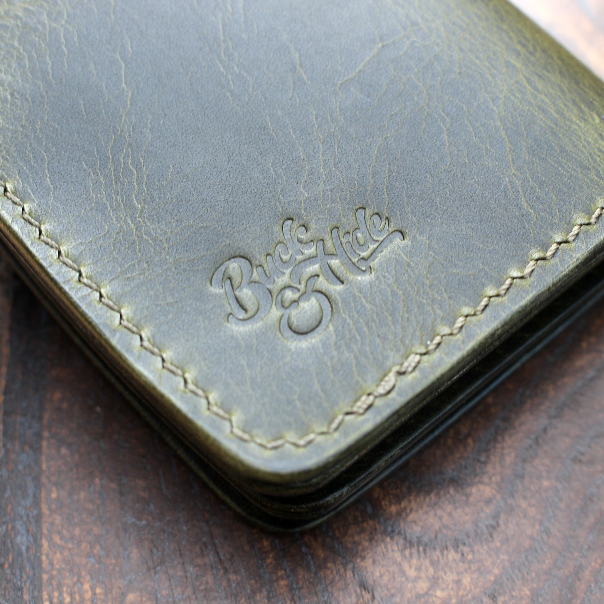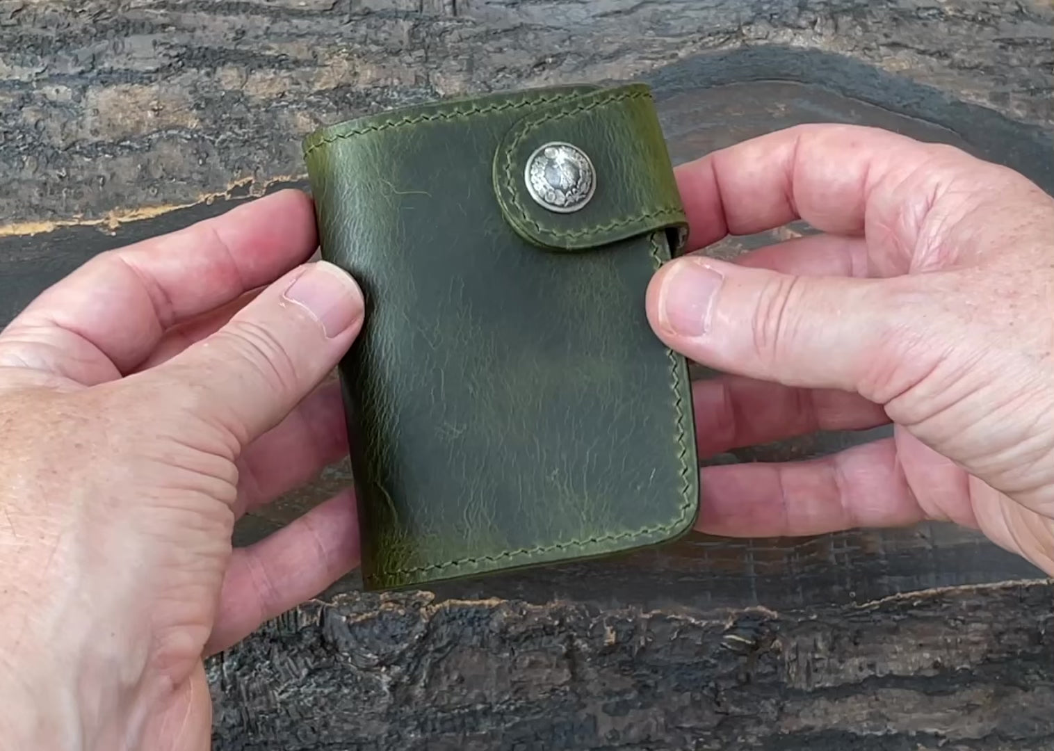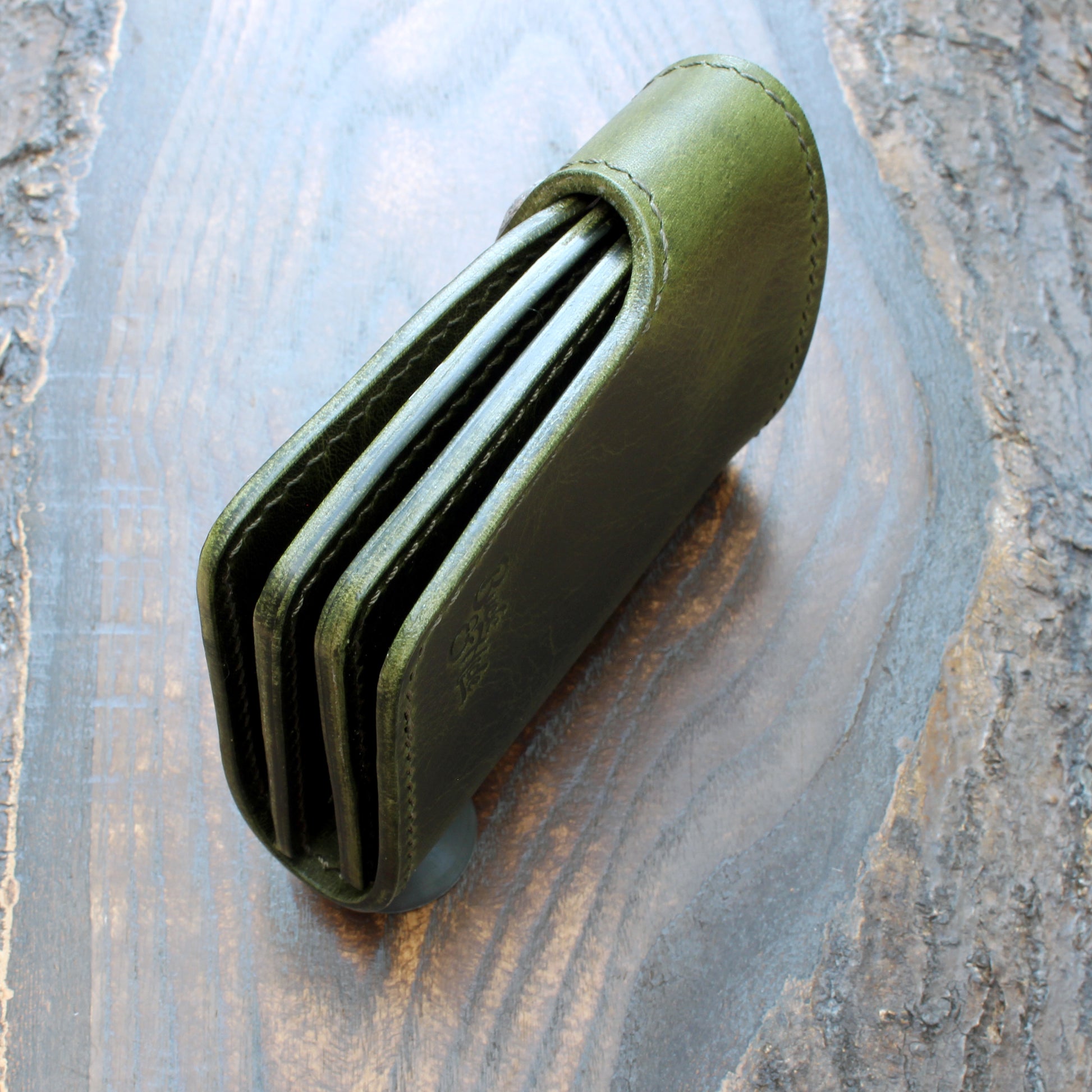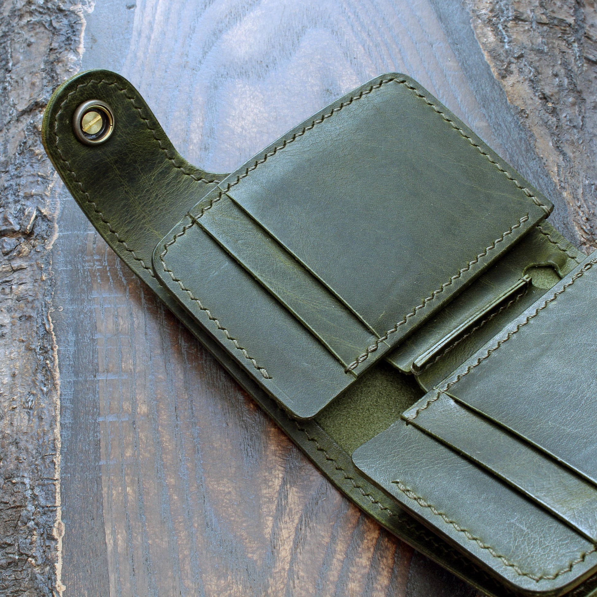 Japanese-style short bifold, olive Wax, vintage coin snap