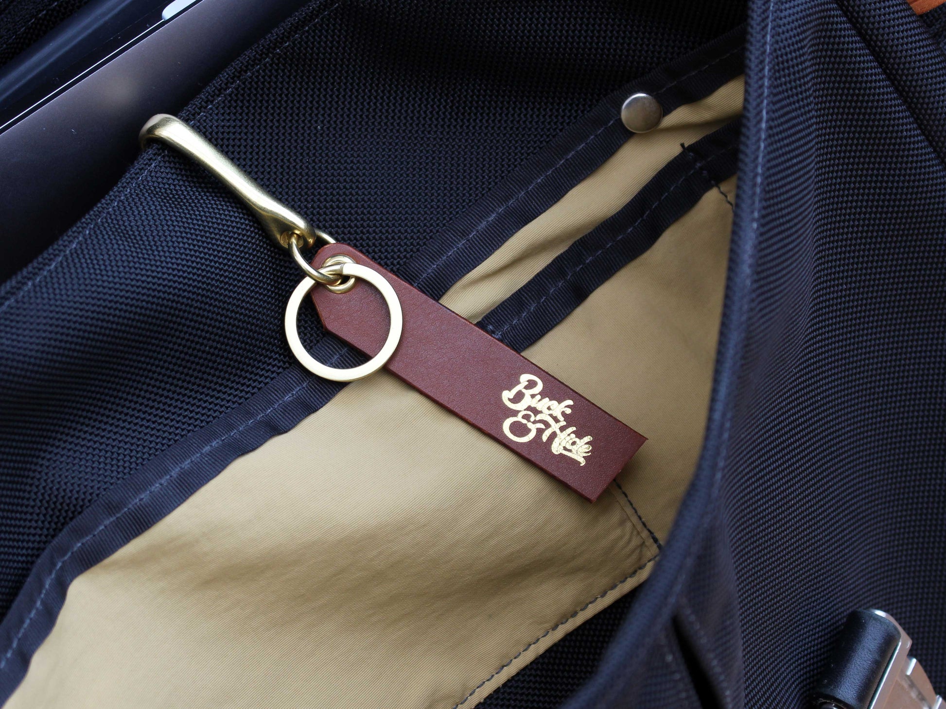 - Polished brass with cognac Rothko Shell Cordovan tag, gold logo