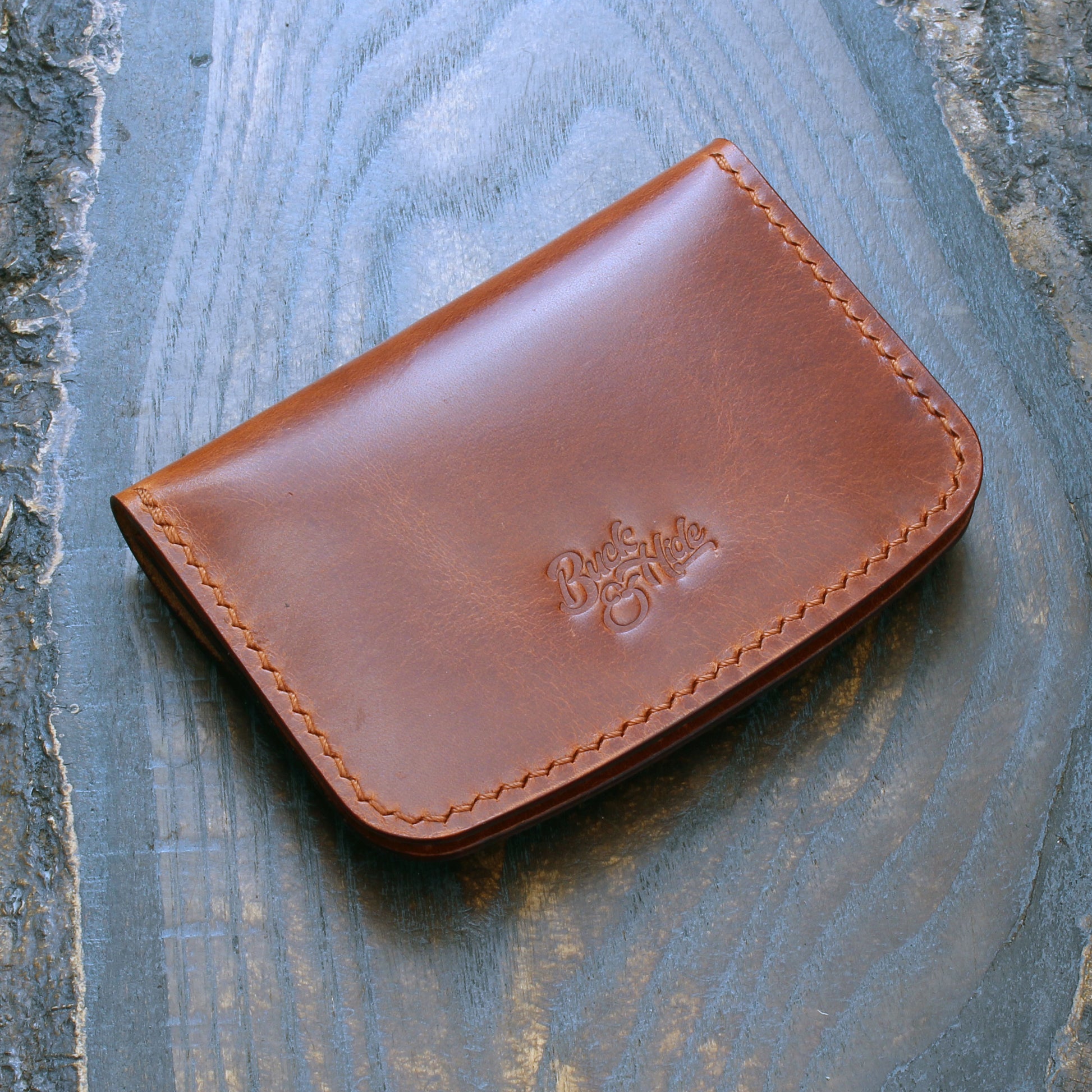 The smallest design in my trucker-inspired range it measures approx. 11x8cm, making it compact yet surprisingly spacious. It holds plenty of cards and folded notes up to 75mm tall. Finished with Japanese solid brass Hasi-Hato snaps and saddle-stitched together by hand using Japanese Vinymo thread in auburn, it’s a tactile, durable, and highly functional everyday piece.
