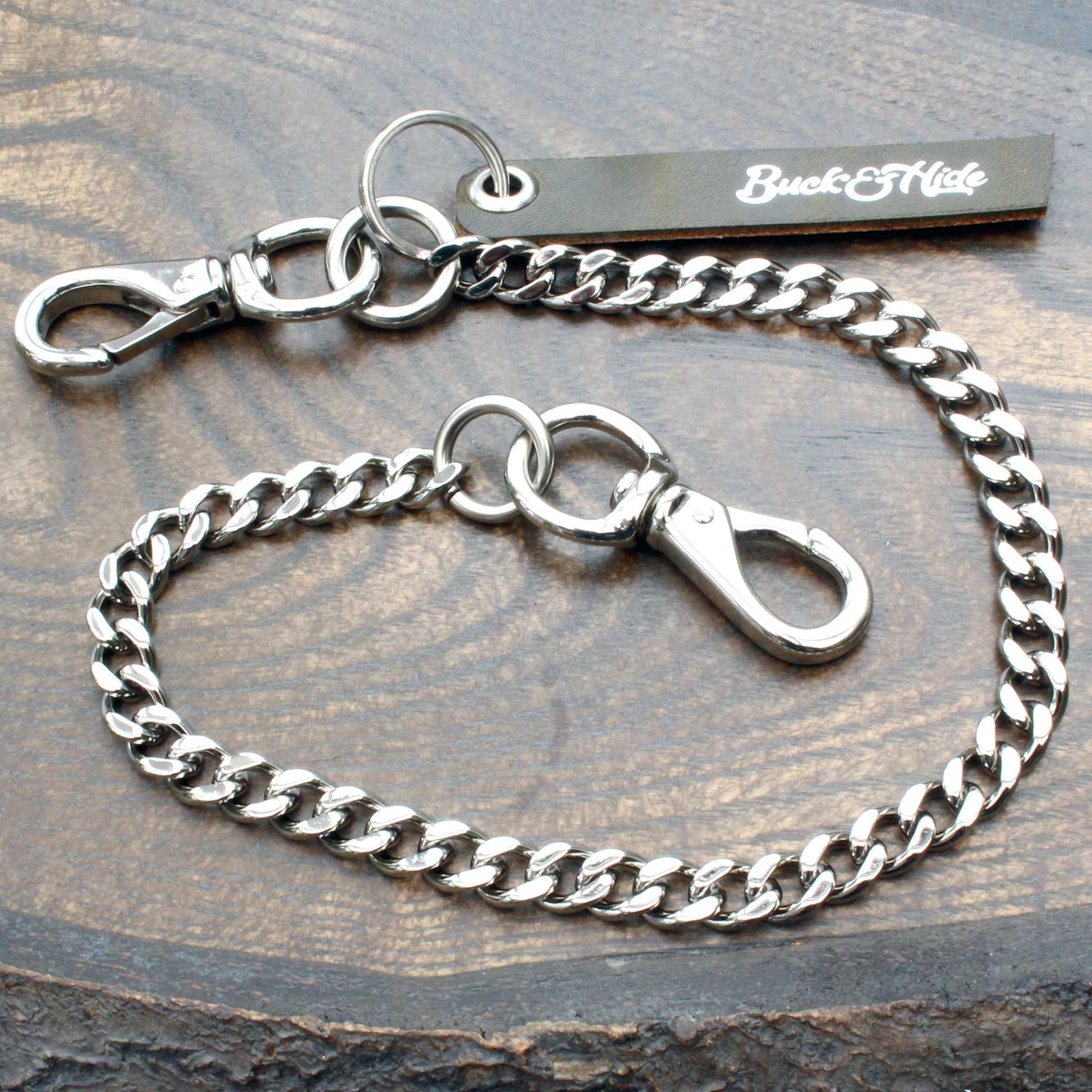 These long solid brass chains are ideal for back pocket wallets or just for a long keychain. The metal is solid brass and all comes from a USA foundry so the quality is excellent. The whole piece has a really solid, premium feel.